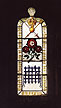 The Tudor window showing the royal regalia, the Tudor rose and the Beaufort portcullis.