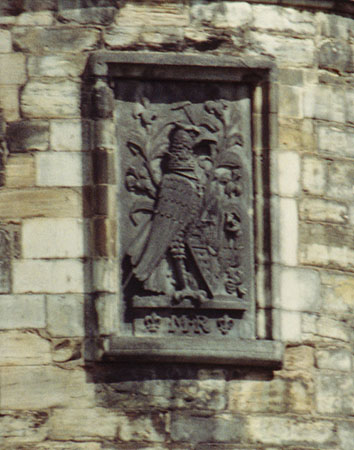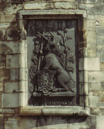 Close-up of the arms and crown over the entrance