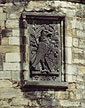 Close-up of the two carvings from the left side of the Palace