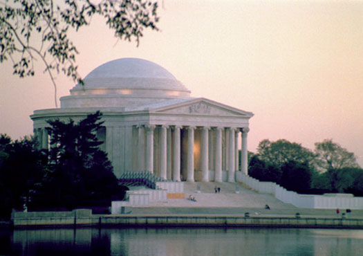 The Jefferson Memorial was the third if the three great Washington memorials to be completed. It was authorized by an Act of Congress in 1934 and was dedicated in 1943. The design by John Russell Pope was based on the Pantheon in Rome, a favorite of Jefferson's. It's resemblance to Jefferson's home, Monticello, is also noticeable.