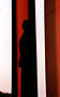 The statue's silhouette on a column at sunset.