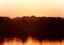 The monument illuminated by the setting sun.