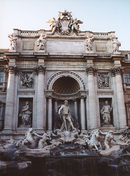 | One of the classic "must-see" tourist spots in Rome. This is looking from the side, for a slightly different look at the fountain. | |